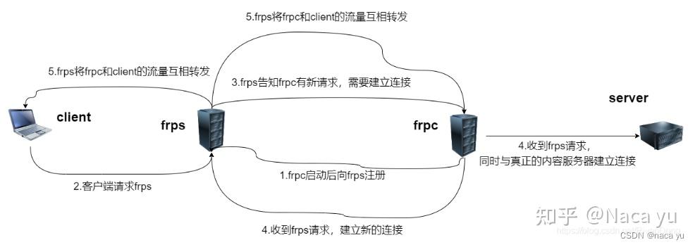 服务端运行,监听一个主端口,等待客户端的连接; 客户端连接到服务端的主端口,同时告诉服务端要监听的端口和转发类型; 服务端fork新的进程监听客户端指定的端口; 外网用户连接到客户端指定的端口,服务端通过和客户端的连接将数据转发到客户端; 客户端进程再将数据转发到本地服务,从而实现内网对外暴露服务的能力